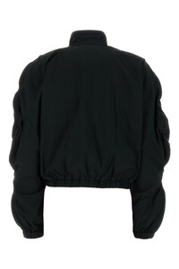 Jacket realized in polyester blend characterized by contrasting printed logo on the chest. - High collar - Zip closure - Expandable sleeves by zip - Two zip pockets at the front - Elastic cuffs and hemline - Lined DETAILS Black polyester blend jacket Exterior: 71% Polyester 29% Nylon Lining: 100% Nylon Made in china Sample size: XS