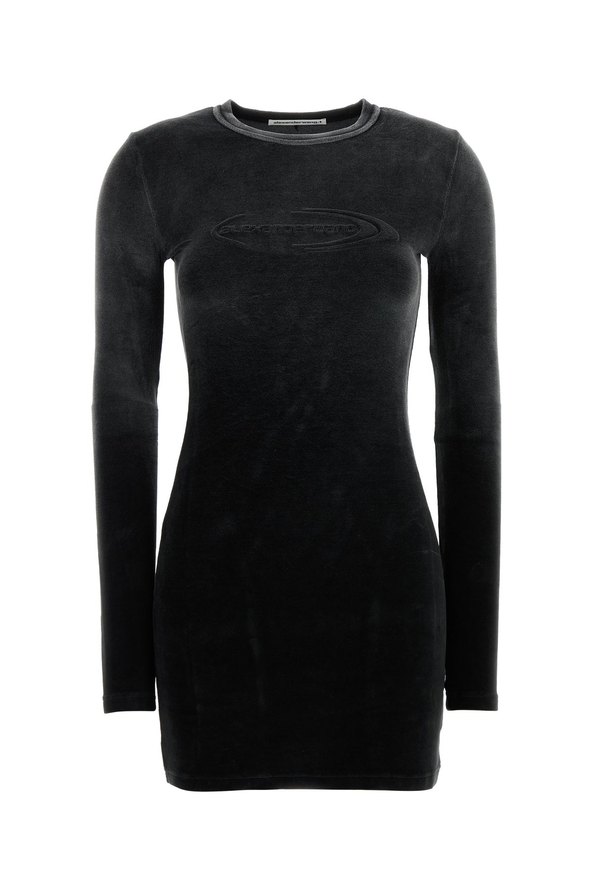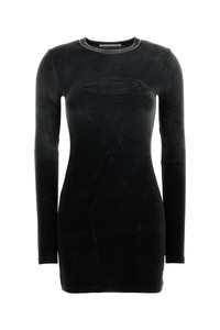 Mini fitted dress realized in stonewashed effect stretch terry fabric characterized by logo in relief on the chest. - Ribbed crew-neck - Unlined DETAILS Black stretch terry fabric mini dress Exterior: 80% Cotton 19% Polyester 1% Elastane Made in portugal Sample size: XS