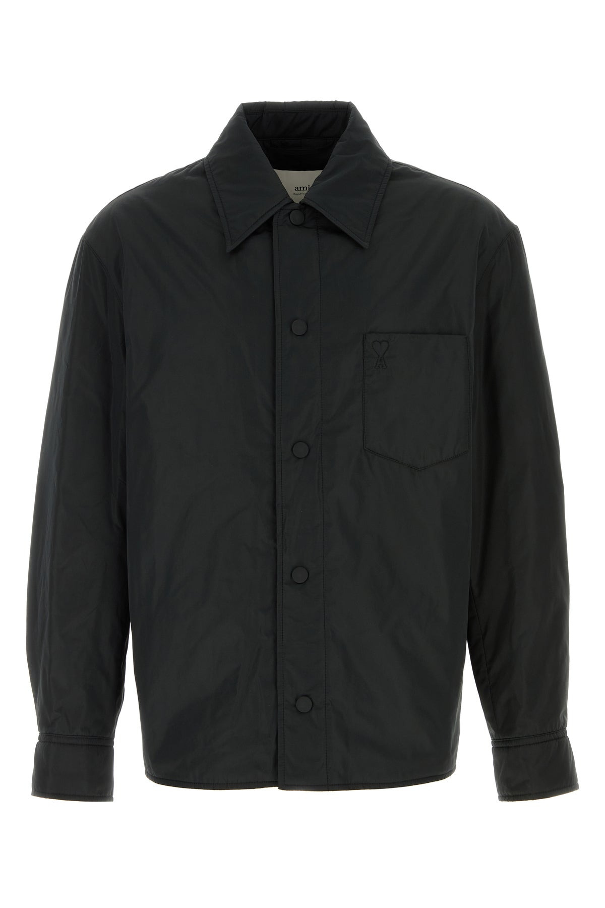Padded shirt realized in polyester characterized by Ami de Coeur motif in relief on the chest. - Pointed collar - Snap buttons closure - Chest pocket - Buttoned rounded cuffs - Lateral slits on the hemline - Lined DETAILS Black polyester shirt Exterior: 100% Polyester Lining: 100% Nylon Padding: 100% Polyester Made in romania Sample size: M