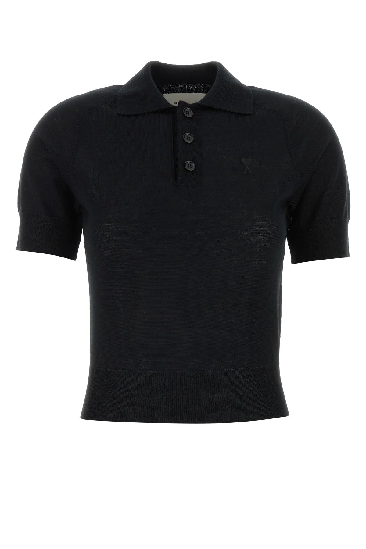 Polo shirt realized in pure virgin wool characterized by tonal Ami de Coeur embroidery on the chest. - Collar - Partial buttons closure - Ribbed cuffs and hemline DETAILS Black wool polo shirt Exterior: 100% Virgin wool Made in italy Sample size: XS