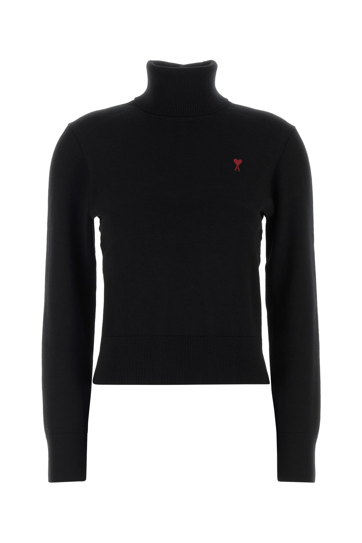 Sweater realized in pure merino wool characterized by Ami De Coeur embroidery on the chest. - Turtleneck - Ribbed cuffs and hemline DETAILS Black wool sweater Exterior: 100% Merino wool Made in portugal Sample size: XS