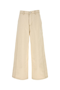 Wide-leg jeans realized in pure cotton denim enriched by logoed label at the back. - Belt loops at the waist - Concealed buttons and a single visible button closure - Two slit pockets at the front and two patch pockets at the back DETAILS Ivory denim wide-leg jeans Exterior: 100% Cotton Made in portugal Sample size: 32