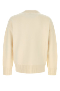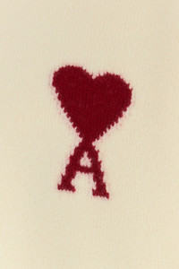 Sweater realized in pure virgin wool characterized by contrasting Ami De Coeur embroidery on the chest. - Ribbed crew-neck, cuffs and hemline DETAILS Ivory wool sweater Exterior: 100% Virgin wool Made in italy Taglia di riferimento: M