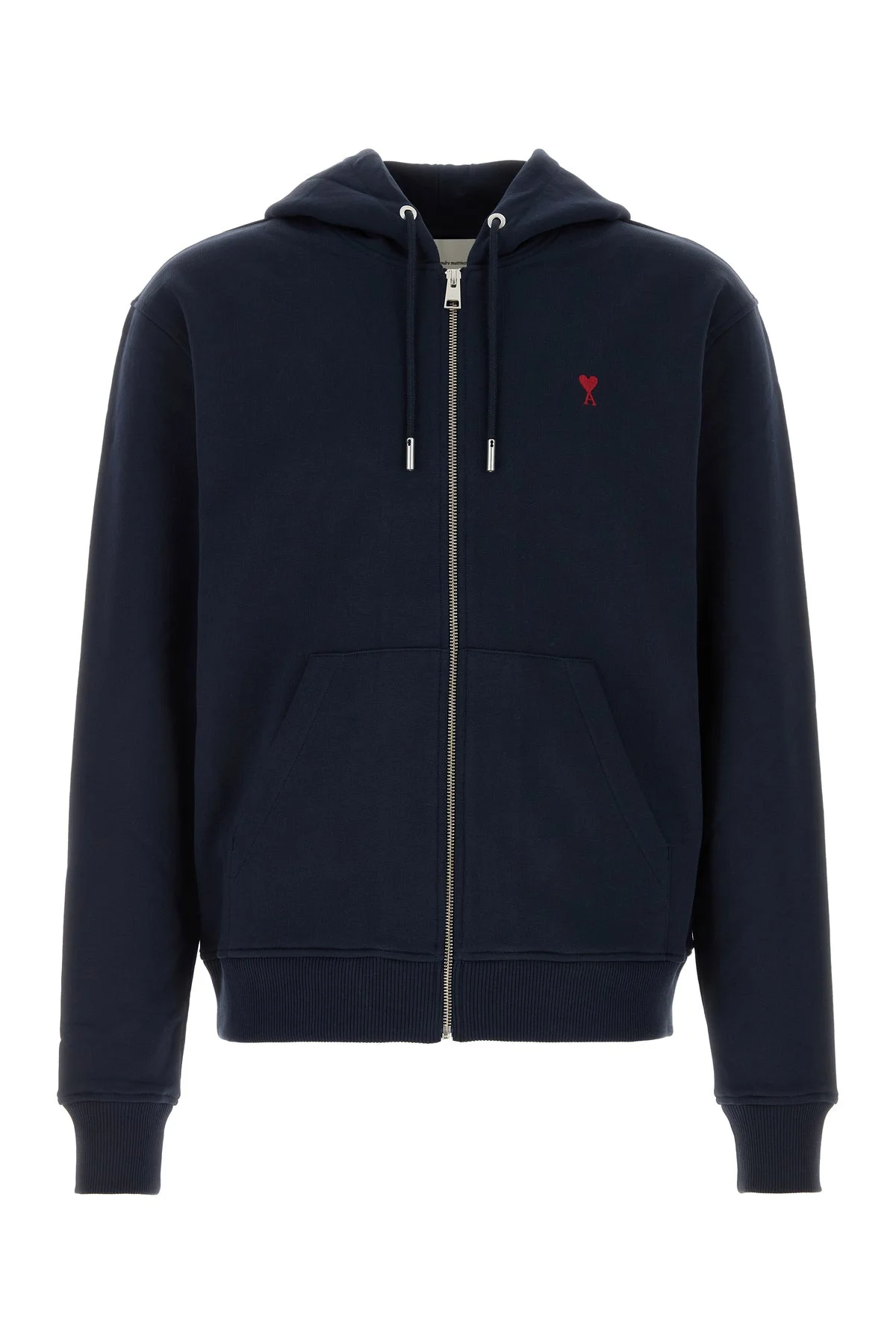 Sweatshirt realized in pure cotton characterized by iconic Ami De Coeur embroidery on the chest. - Drawstring hood - Zip closure - Two patch pockets at the front - Ribbed cuffs and hemline DETAILS Navy blue cotton sweatshirt Exterior: 100% Cotton Made in portugal Sample size: M