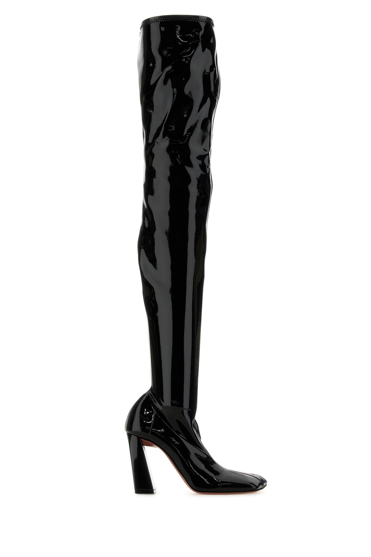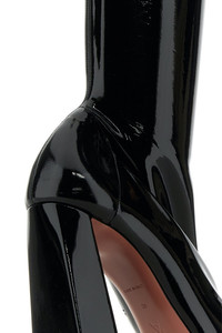 Over-the-knee boots realized in latex. - Zip closure on the side - Squared toe - Printed logo on the inside - Thick heel DETAILS Black latex Marine boots Exterior: 100% Fabric Interior: 100% Fabric Sole: Leather and Rubber Made in italy Heel height: 9 cm