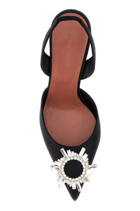 Slingback realized in satin enriched by jewel detail on the toe. - Elastic ankle strap - Pointed toe model - Peculiar stiletto heel - Embossed logo on the inside DETAILS Black satin Begum pumps Exterior: 100% Fabric Interior: 100% Leather Sole: Leather Made in italy Heel height: 9,5 cm