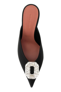 Mules realized in satin enriched by jewel detail at the front. - Pointed toe - Stiletto heel - Embossed logo on the inside DETAILS Black satin Camelia mules Exterior: 100% Fabric Interior: 100% Leather Sole: Leather Made in italy Heel height: 9 cm