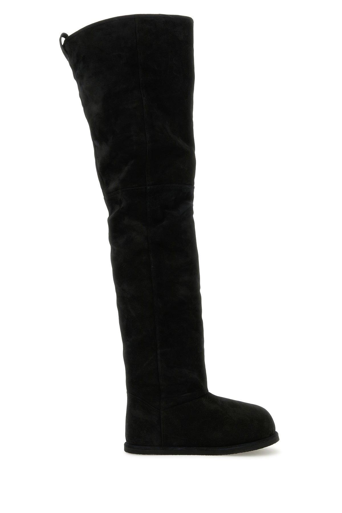 Over-the-knee boots realized in suede. - Round toe - Pull-tab at the back - Shearling interior - Logoed patch on the inside DETAILS Black suede Heidi over-the-knee boots Exterior: 100% Suede Interior: 100% Shearling Sole: Rubber Made in italy