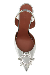 Slingback realized in smooth leather enriched by jewel detail on the toe. - Elastic ankle strap - Pointed toe model - Peculiar stiletto heel - Embossed logo on the inside DETAILS Silver leather Begum pumps Exterior: 100% Leather Interior: 100% Leather Sole: Leather Made in italy Heel height: 9,5 cm