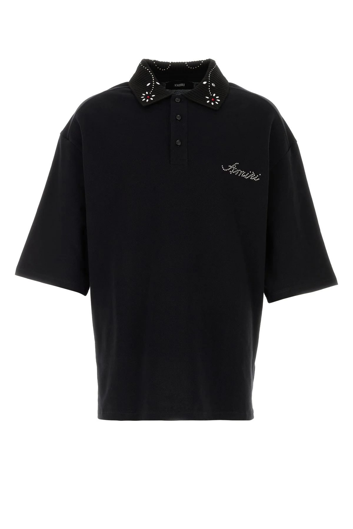 Polo shirt realized in pure cotton piquet enriched by rhinestones on the collar and metal studs logo on the chest. - Ribbed collar - Partial buttons closure - Loose fit DETAILS Black piquet polo shirt Exterior: 100% Cotton Made in italy Sample size: M