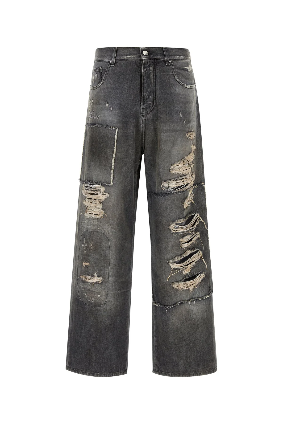 Jeans realized in stonewashed and distressed pure cotton denim characterized by rips at the front enriched by logoed metal plate and logoed label at the back. - Belt loops at the waist - Concealed buttons and single visible button closure - Five classic pockets DETAILS Charcoal denim jeans Exterior: 100% Cotton Made in italy Sample size: 31