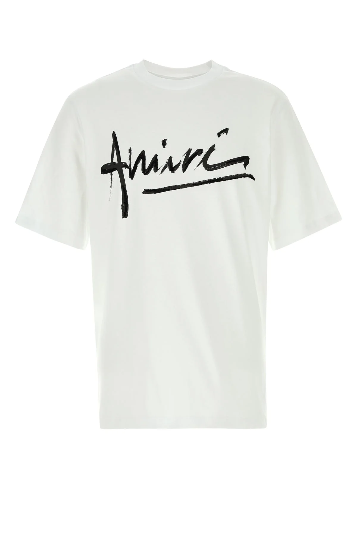 T-shirt realized in pure cotton characterized by contrasting Amiri Script print on the chest. - Ribbed crew-neck DETAILS White cotton t-shirt Exterior: 100% Cotton Made in italy Sample size: M