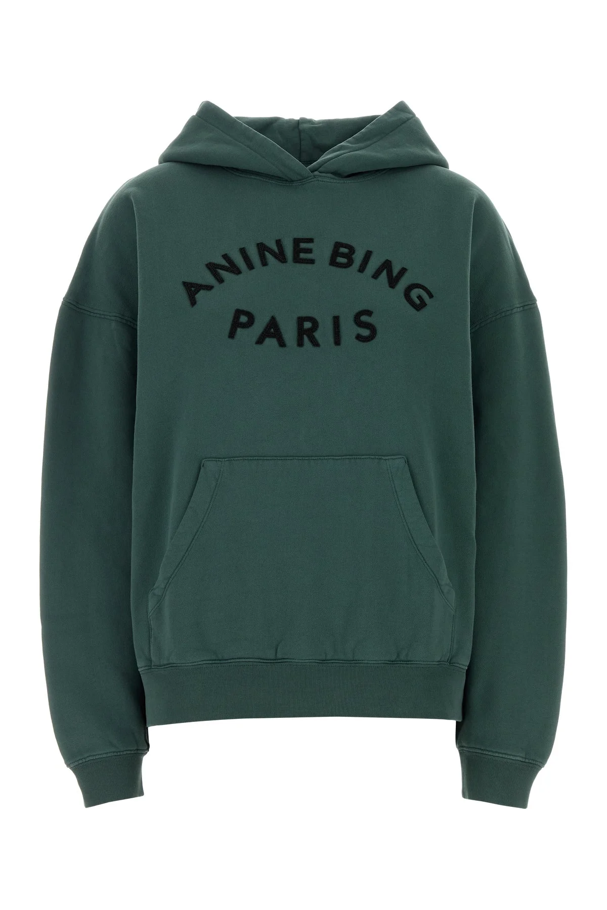 Sweatshirt realized in pure cotton enriched by logoed patch on the chest. - Drawstring hood - Pouch pocket - Ribbed cuffs and hemline DETAILS Dark green cotton sweatshirt Exterior: 100% Cotton Made in turkiye Sample size: S
