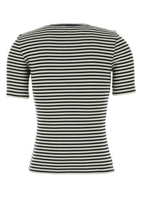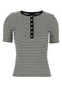 T-shirt realized in stretch cotton characterized by striped embroidery on the entire surface. - Crew-neck - Partial buttons closure DETAILS Embroidered stretch cotton Alessia t-shirt Exterior: 95% Cotton 5% Elastane Made in turkiye Sample size: XS