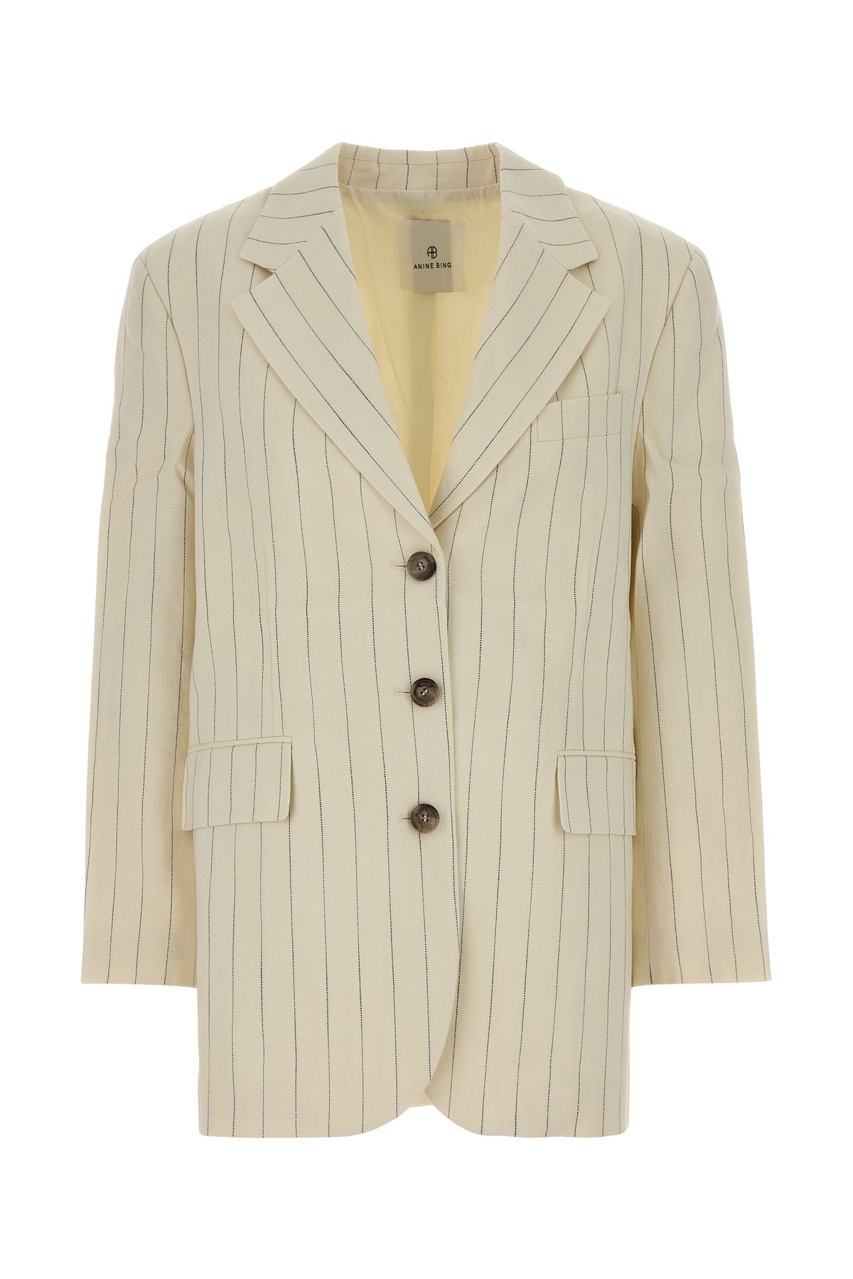 Blazer realized in viscose blend characterized bye pin-striped embroidery on the entire surface. - Notched lapels - Padded shoulders - Single-breasted closure by buttons - Chest pocket and two flap pockets at the front - Buttoned cuffs - Central slit at the back - Lined DETAILS Embroidered viscose blend Sara blazer Exterior: 91% Viscose 8% Polyester 1% Elastane Lining: 52% Viscose 48% Polyester Made in portugal Sample size: XS