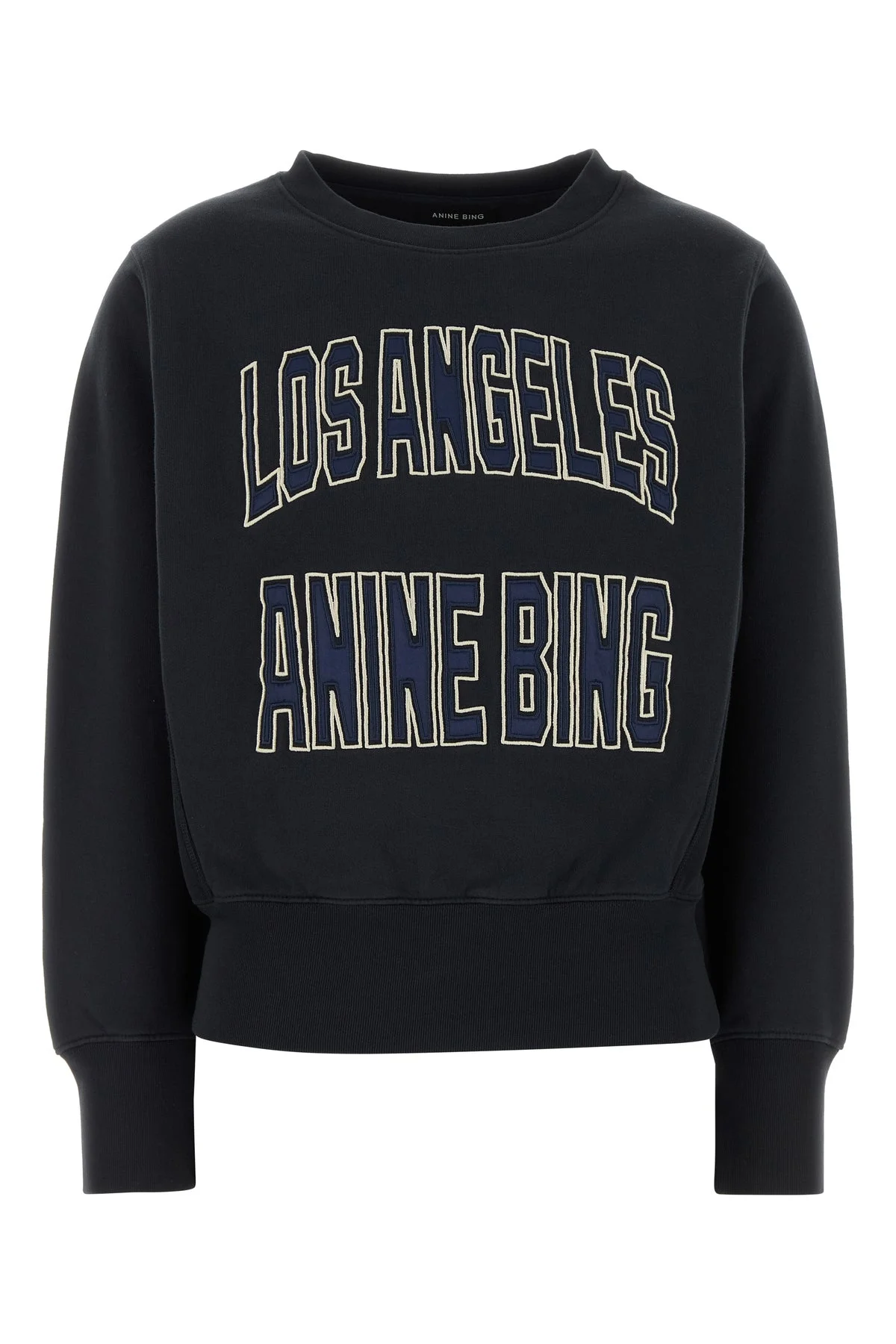 Sweatshirt realized in cotton blend characterized by contrasting logoed embroidery at the front. - Ribbed crew-neck, cuffs and hemline DETAILS Midnight blue cotton blend Harry sweatshirt Exterior: 65% Cotton 35% Polyester Made in turkiye Sample size: XS