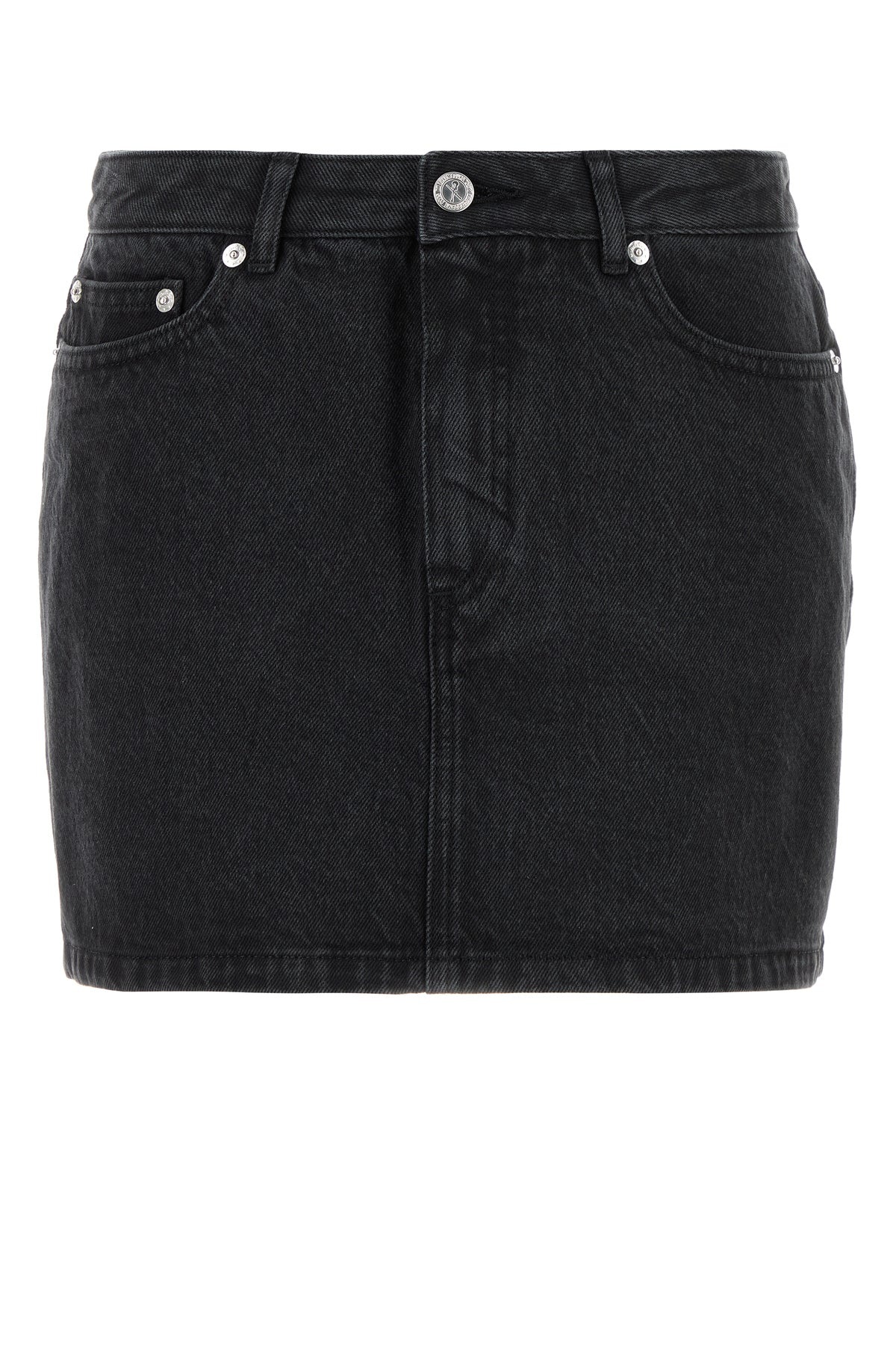 Mini skirt realized in pure cotton denim. - Belt loop at the waist - Concealed zip and single visible button closure - Five classic pockets - Unlined DETAILS Black denim mini skirt Exterior: 100% Cotton Made in portugal Sample size: 38