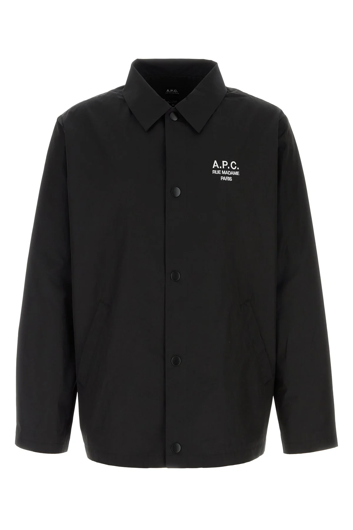 Jacket realized in polyester blend characterized by embroidered logo on the chest. - Collar - Buttons closure - Adjustable cuffs by buttons - Two slit pockets at the front - Lined DETAILS Black polyester jacket Exterior: 60% Polyester 40% Cotton Lining: 100% Nylon Made in china Sample size: M