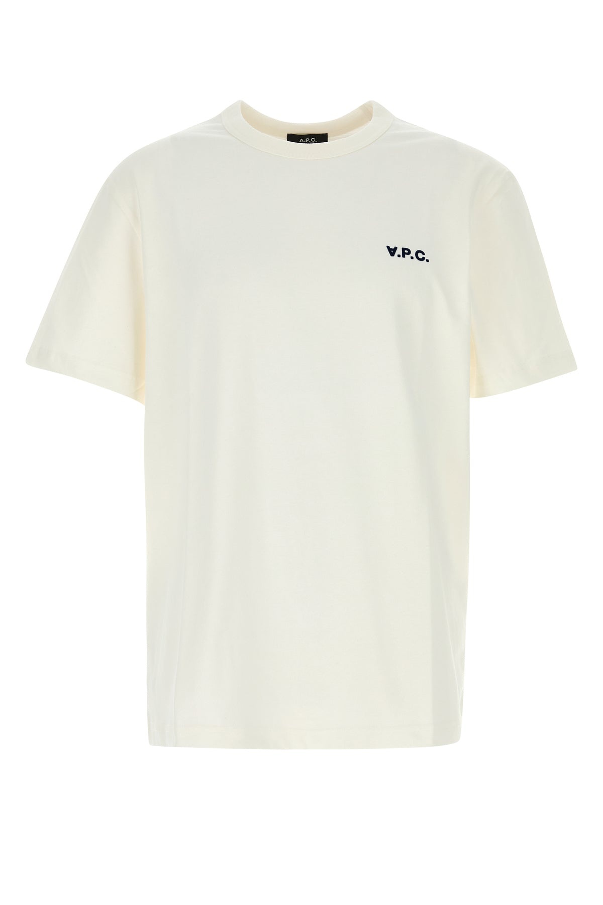 T-shirt realized in pure cotton characterized by flocked printed logo on the chest. - Ribbed crew-neck DETAILS Ivory cotton t-shirt Exterior: 100% Cotton Made in portugal Sample size: M