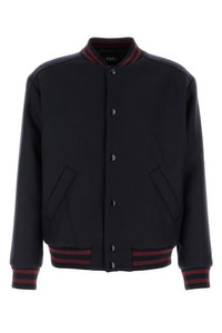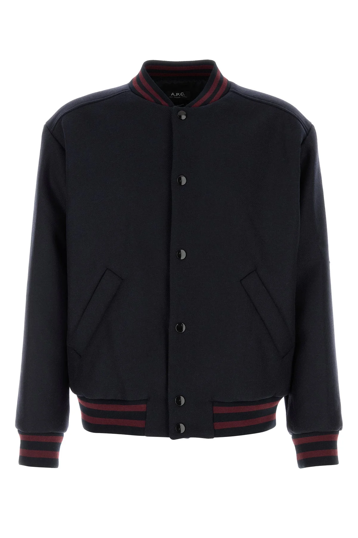 Bomber jacket realized in wool blend characterized by contrasting ribbed crew-neck, cuffs and hemline. - Buttons closure - Two slit pockets at the front - Lined interior with a slit pocket DETAILS Midnight blue wool blend bomber jacket Exterior: 75% Wool 25% Nylon Lining: 64% Cotton 36% Nylon Made in romania Sample size: M