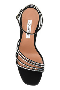 Sandals realized in fabric enriched by rhinestones on the e tire surface. - Adjustable ankle strap closure - Round toe - Logoed label on the inside - Italian heel DETAILS Embellished fabric Mistica sandals Exterior: 100% Fabric Interior: 100% Fabric 100% Leather Sole: Leather Made in italy Height: 10,5 cm
