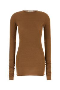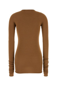 Top realized in viscose blend. - Round neckline - Rolled trimmings DETAILS Caramel viscose blend Sita top Exterior: 83% Viscose 17% Polyester Made in italy Sample size: XS