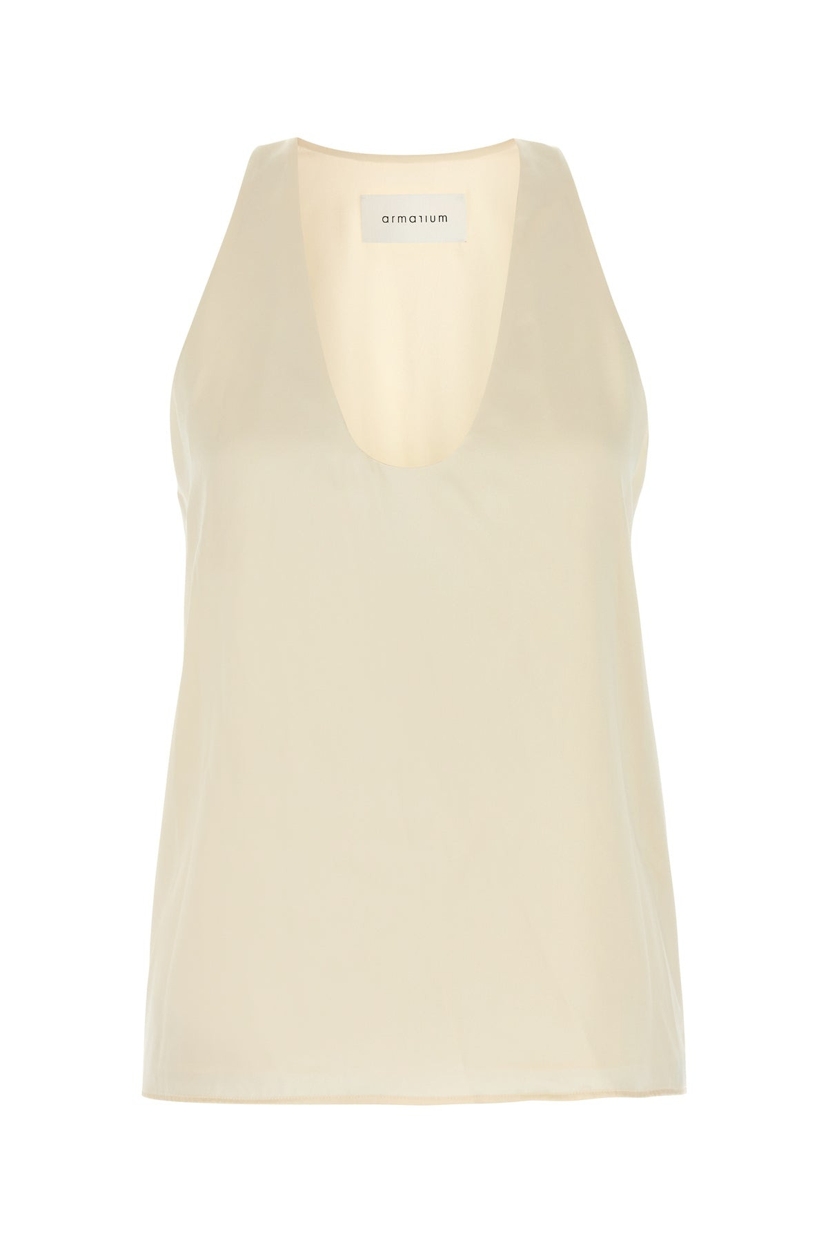 Top realized in stretch silk satin. - Round neckline - Unlined DETAILS Cream stretch satin Bianca top Exterior: 96% Silk 4% Elastane Lining: 96% Silk 4% Elastane Made in italy Sample size: 38