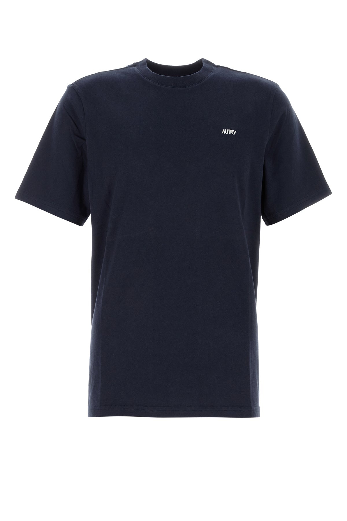 T-shirt realized in pure cotton characterized by contrasting embroidered logo on the chest. - Ribbed crew-neck DETAILS Dark blue cotton t-shirt Exterior: 100% Cotton Made in italy Sample size: M