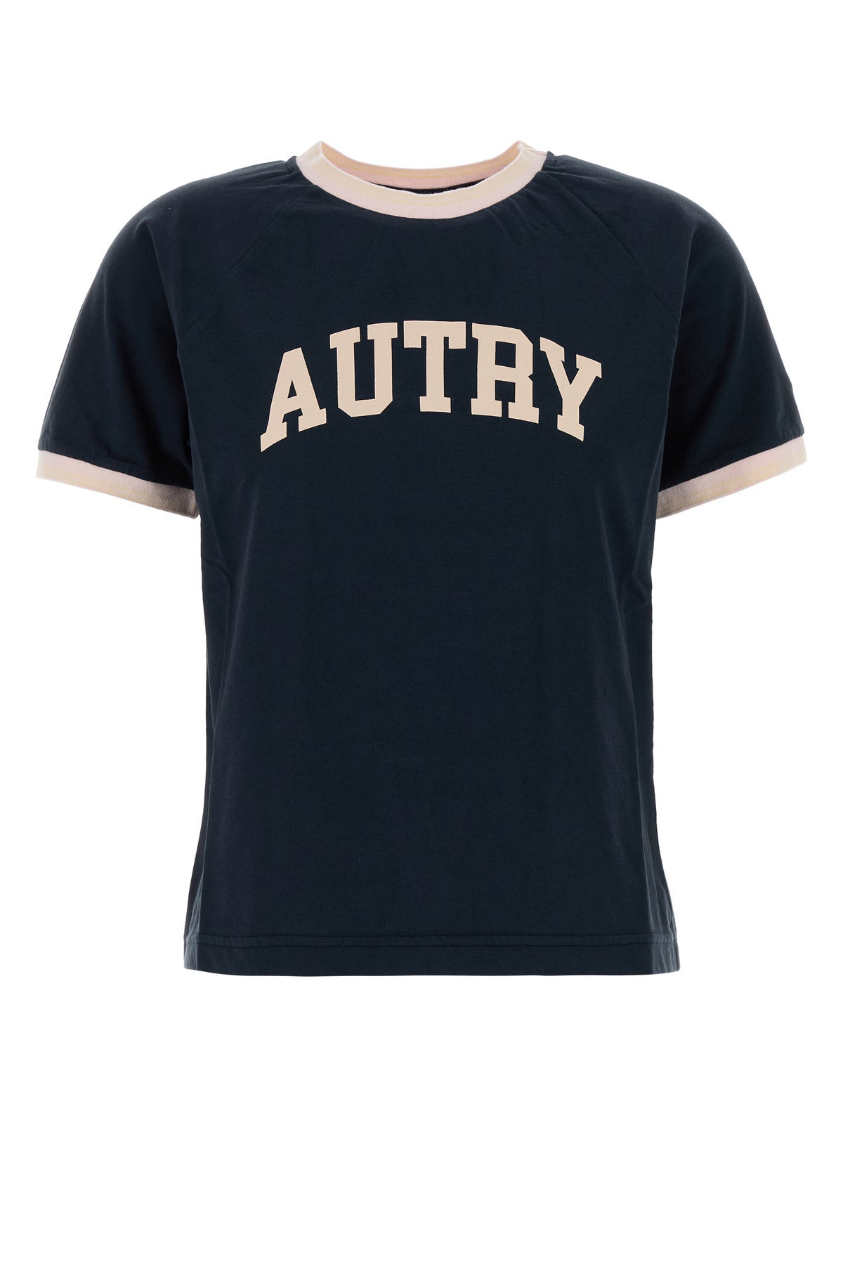 T-shirt realized in pure cotton characterized by contrasting printed logo on the chest. - Contrasting ribbed crew-neck and cuffs DETAILS Dark blue cotton t-shirt Exterior: 100% Cotton Made in tunisia Sample size: XS