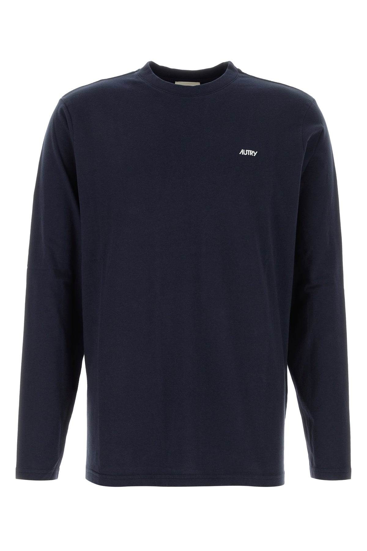 Long-sleeves t-shirt realized in pure cotton characterized by contrasting embroidered logo on the chest. - Ribbed crew-neck DETAILS Dark blue cotton t-shirt Exterior: 100% Cotton Made in tunisia Sample size: M