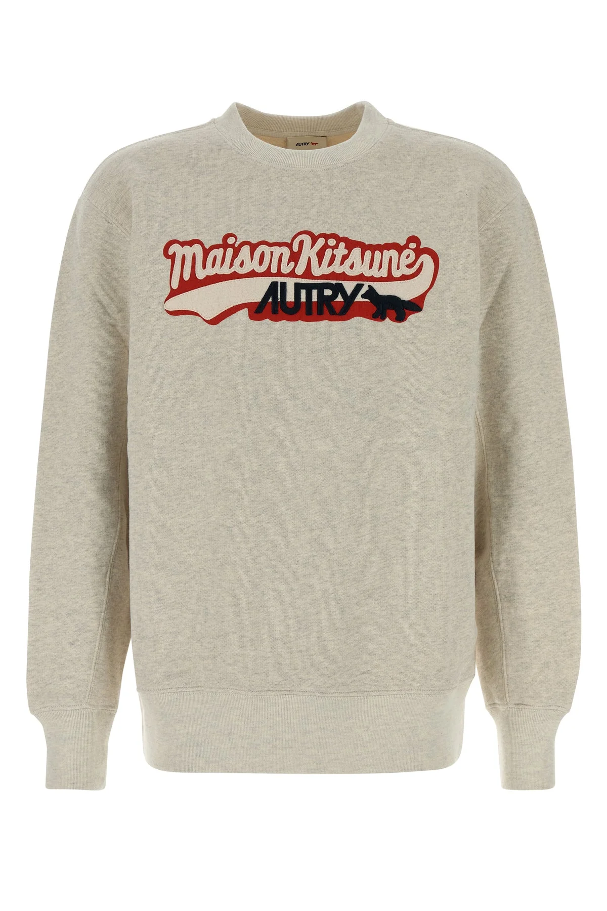 Sweatshirt created in collaboration with Maison Kitsune realized in pure cotton characterized by contrasting embroidered logo on the chest. - Ribbed crew-neck, cuffs and hemline DETAILS Melange grey cotton Autry x Maison Kitsune sweatshirt Exterior: 100% Cotton Made in tunisia Sample size: M