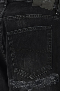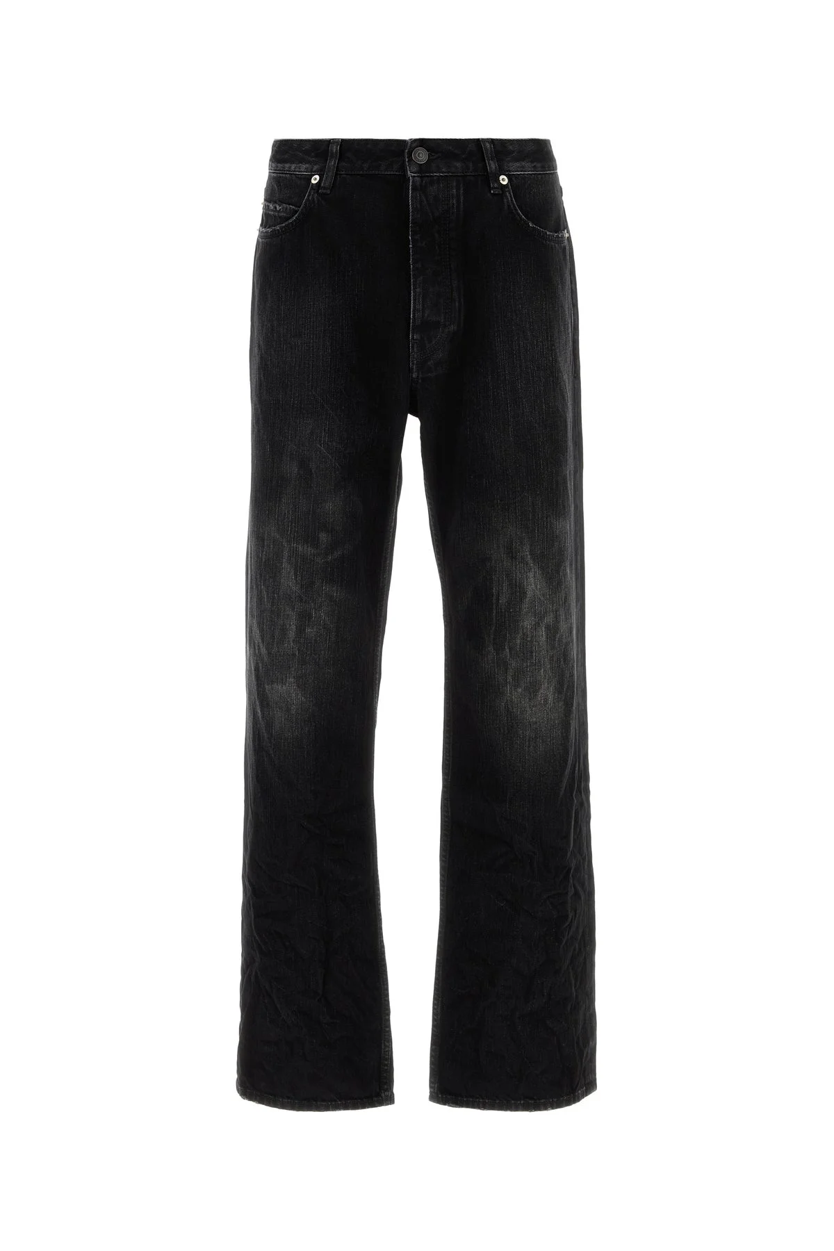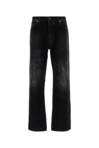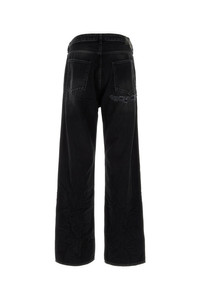Wide-leg jeans realized in stonewashed and distressed pure cotton denim with intentional rip enriched by logoed label at the back. - Belt loops at the waist - Concealed buttons and a single visible button closure - Five classic pockets DETAILS Black denim wide-leg jeans Exterior: 100% Cotton Made in italy Sample size: 31