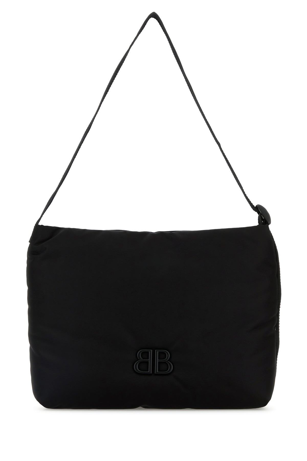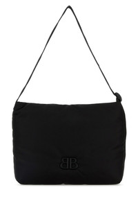 Shopping bag realized in fabric enriched by BB metal detail at the front. - Adjustable tonal fabric shoulder strap - Magnetic button closure - Lined interior with a patch pocket DETAILS Black fabric Monaco shopping bag Exterior: 100% Fabric Lining: 100% Fabric Finishing: Enameled metal Made in Width: 36 cm Height: 24 cm Depth: 14 cm Min shoulder strap length: 10 cm Max shoulder strap length: 52 cm