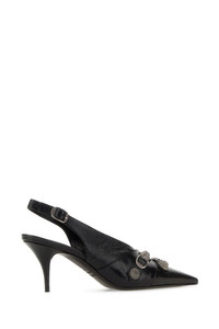 Slingback realized in Arena lamb leather enriched by metal studs and buckles at the front and at the back. - Pointed toe - Embossed logo on the inside - Stiletto heel DETAILS Exterior: 100% Lamb Interior: 100% Leather Sole: Leather Made In Italy Heel height: 7 cm