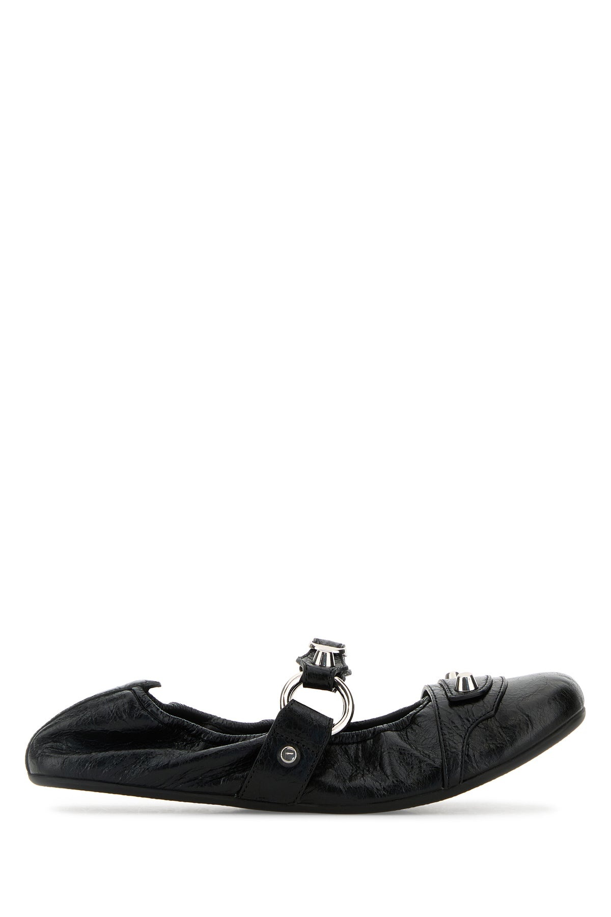 Ballerinas realized in Arena lamb leather enriched by metal studs and buckles at the front. - Round toe - Tonal leather strap on the instep - Embossed logo on the inside DETAILS Black leather City ballerinas Exterior: 100% Lamb Interior: 100% Leather Sole: Rubber Made in italy