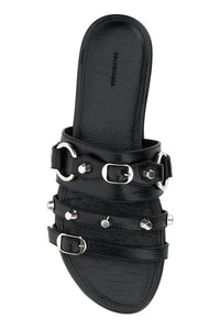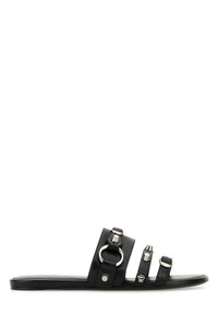 Slippers realized in Arena lamb leather enriched by metal studs and buckles on the instep. - Round toe - Embossed logo on the inside DETAILS Black leather City slippers Exterior: 100% Lamb Interior: 100% Lamb Sole: Leather Made in italy
