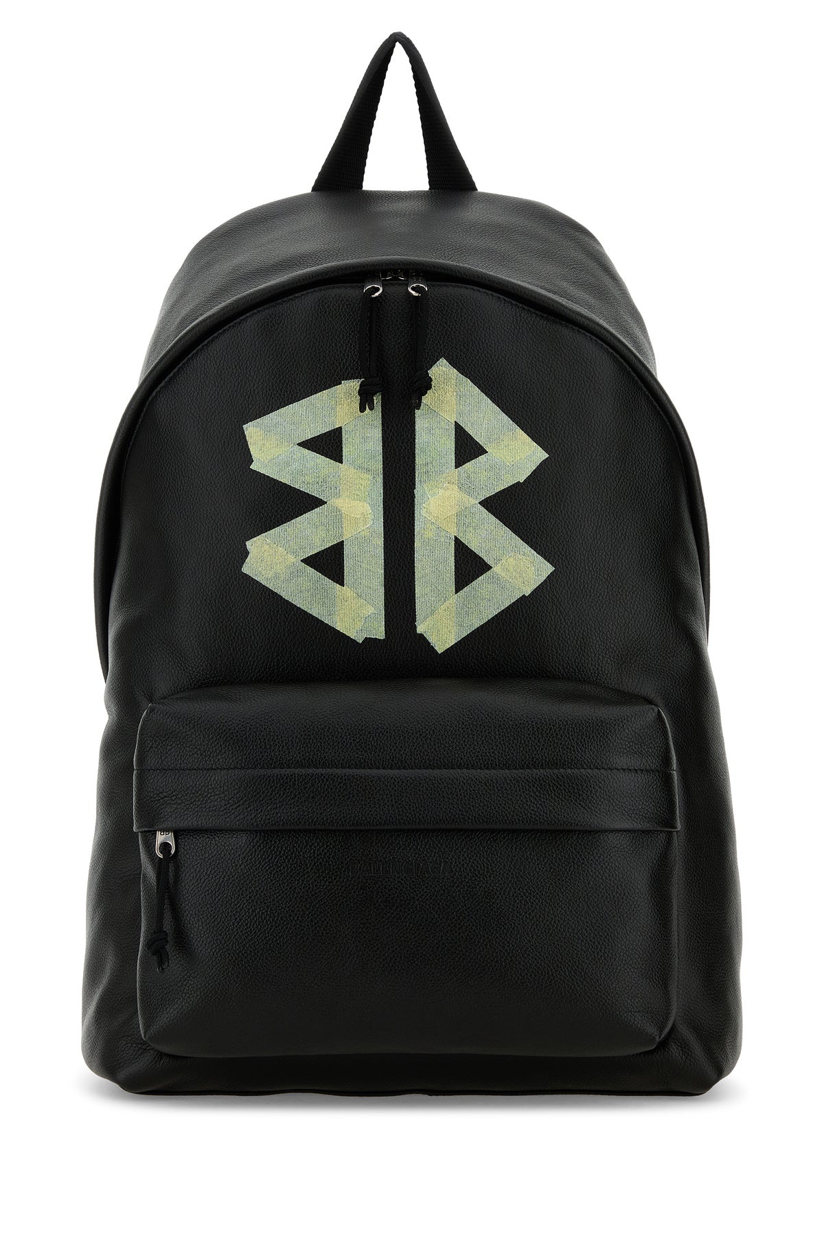 Backpack realized in pebble leather characterized by embossed logo and contrasting printed logo at the front. - Tonal leather handle - Adjustable padded tonal fabric shoulder straps - Zip closure - A zip pocket at the front - Lined interior with a zip pocket and a slit pocket DETAILS Black leather Explorer backpack Exterior: 100% Leather Lining: 100% Fabric Finishing: Silver metal Made in italy Width: 35 cm Height: 47 cm Depth: 20 cm