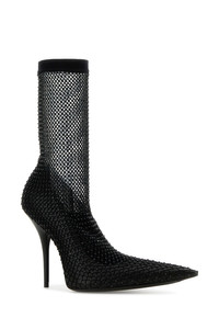 Ankle boots realized in nappa leather and mesh entirely covered by rhinestones. - Pointed toe - Stiletto heel - Embossed logo on the inside DETAILS Black nappa leather and mesh Avenue ankle boots Exterior: 100% Nappa leather 100% Fabric 100% Rhinestones Interior: 100% Leather Sole: Leather Made in italy Heel height: 11 cm