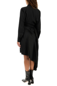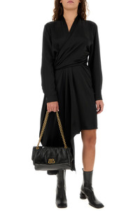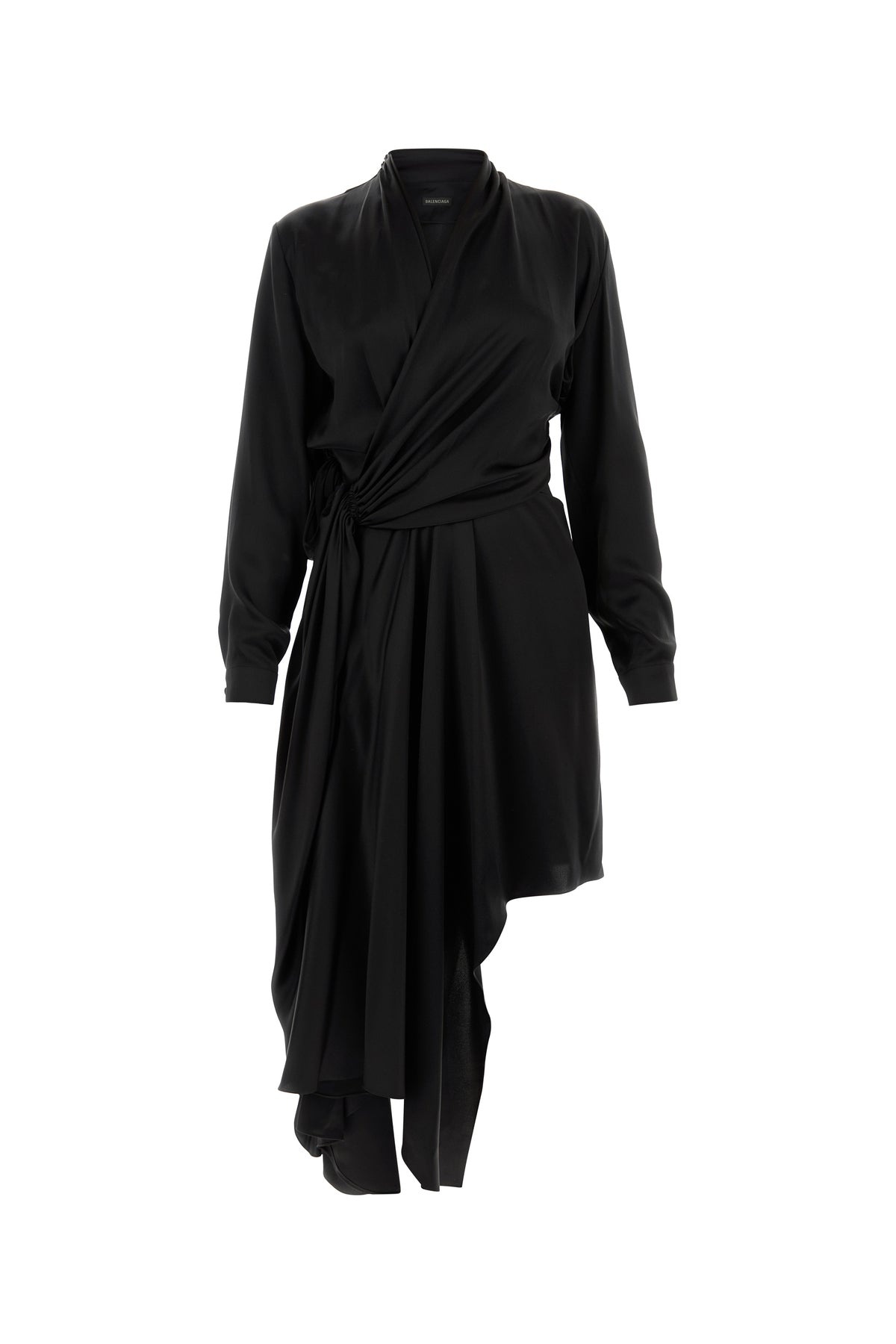 Dress realized in pure silk characterized by peculiar drape at the front. - Deep V neckline - Concealed zip closure on the sides - Buttoned cuffs - Asymmetric hemline - Unlined DETAILS Black satin dress Exterior: 100% Silk Made in italy Model is 170 cm and is wearing a size 36