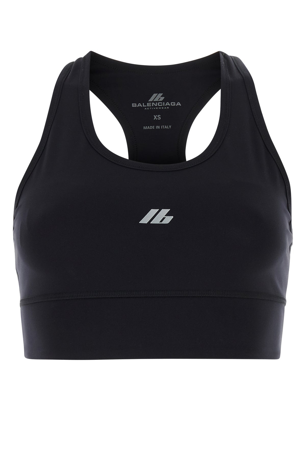 Crop-top realized in stretch nylon characterized by laminated Activewear print on the chest. - Round neckline - Elastic hemline - Lined DETAILS Exterior: 58% Nylon 42% Elastane Lining: 58% Nylon 42% Elastane Made In Italy Sample size: XS