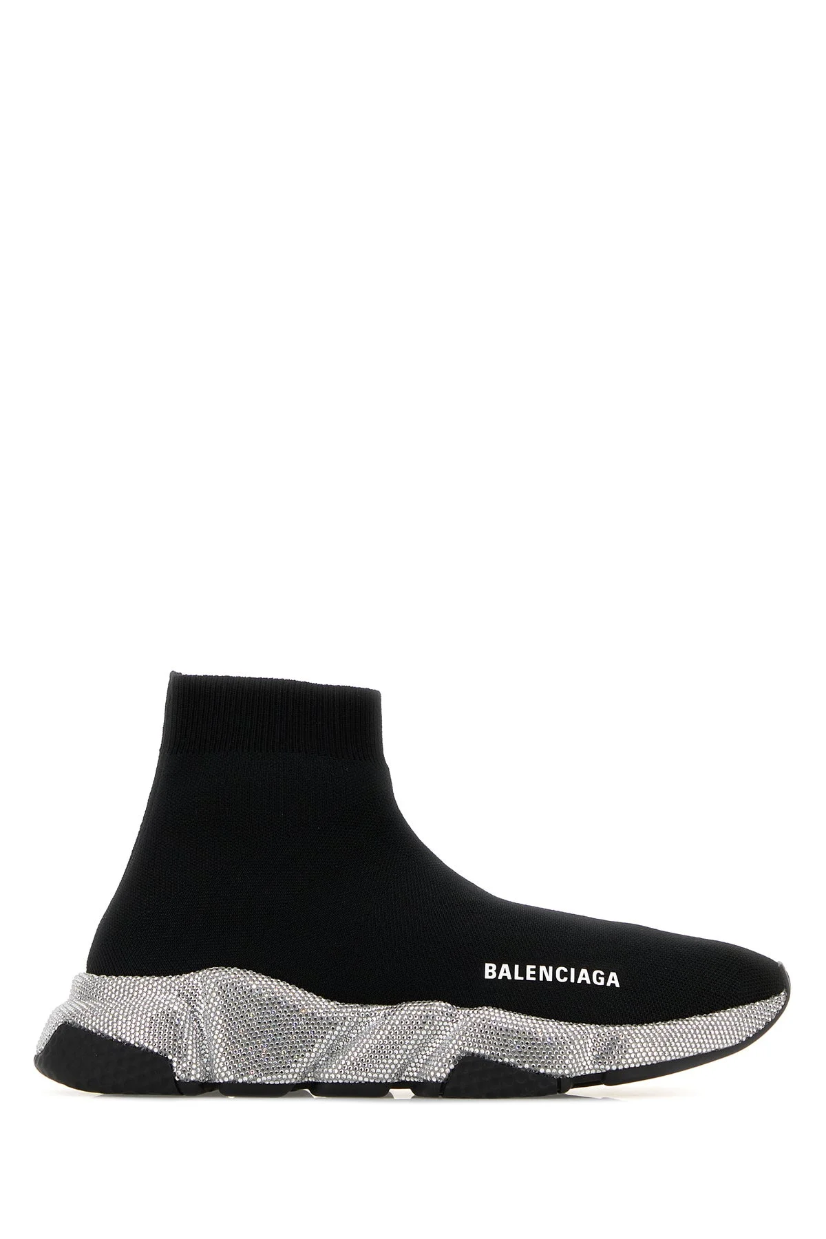 High-top sock sneakers realized in stretch nylon characterized by contrasting printed logo on the side. - Ribbed leg - Printed logo on the inside - Moulded sole entirely covered by rhinestones DETAILS Black stretch nylon Speed sneakers Exterior: 80% Nylon 20% Elastane Interior: 100% Fabric Sole: Rubber Made in