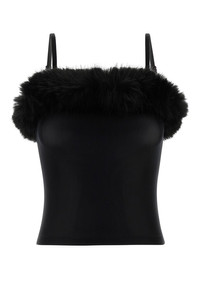 Top realized in stretch nylon with eco fur insert at the top. - Squared neckline - Thin shoulder straps DETAILS Black stretch nylon top Exterior: 83% Nylon 17% Elastane Made in portugal Sample size: S
