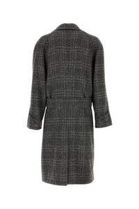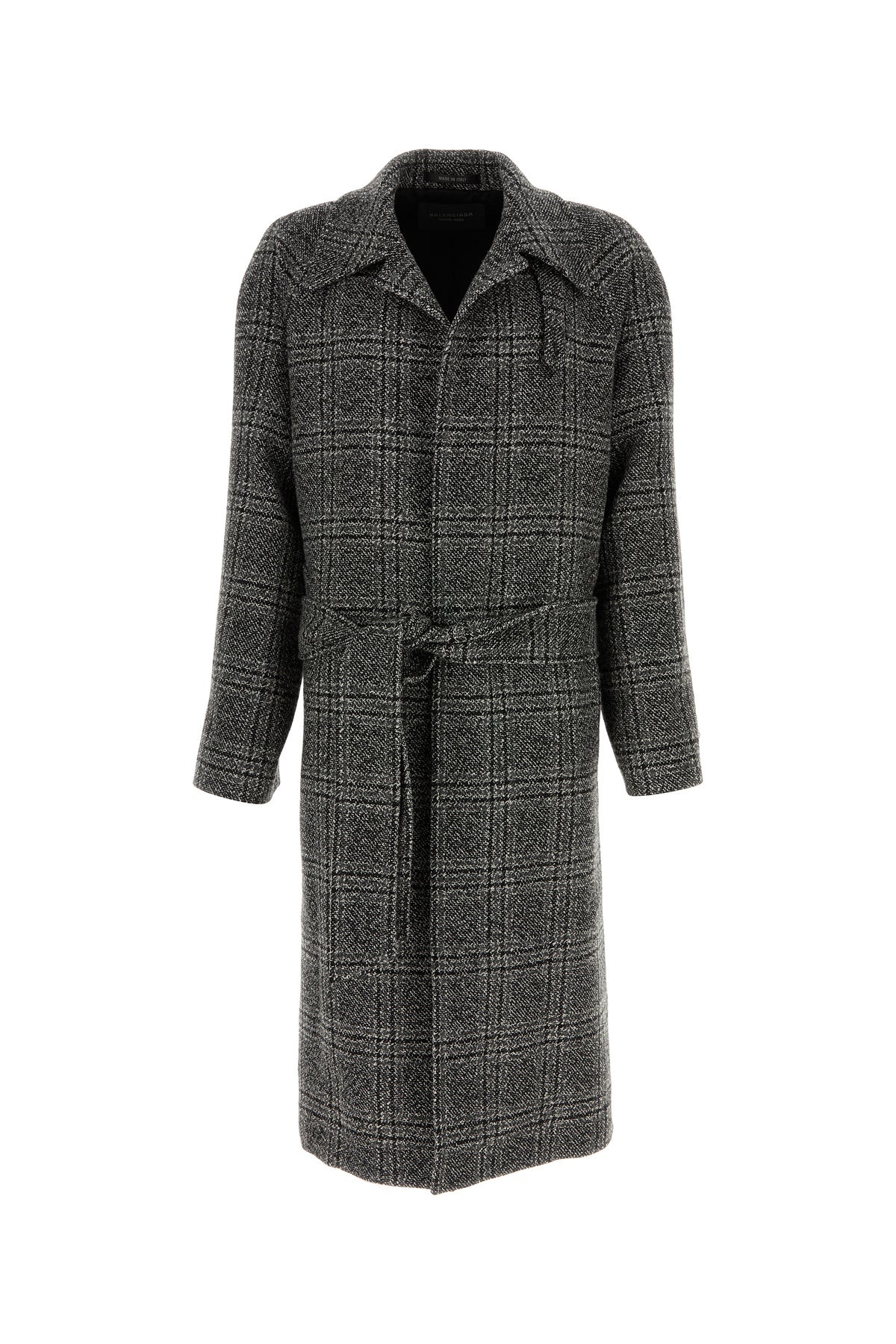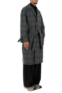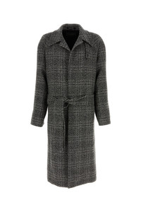Long-cut coat realized in pure wool characterized by tartan motif embroidery on the entire surface enriched by detachable belt to tie at the waist. - Lapels - Two slit pockets at the front - Straps on the cuffs - Central slit at the back - Lined DETAILS Embroidered wool coat Exterior: 100% Wool Lining: 100% Cupro Made in italy Sample size: 2
