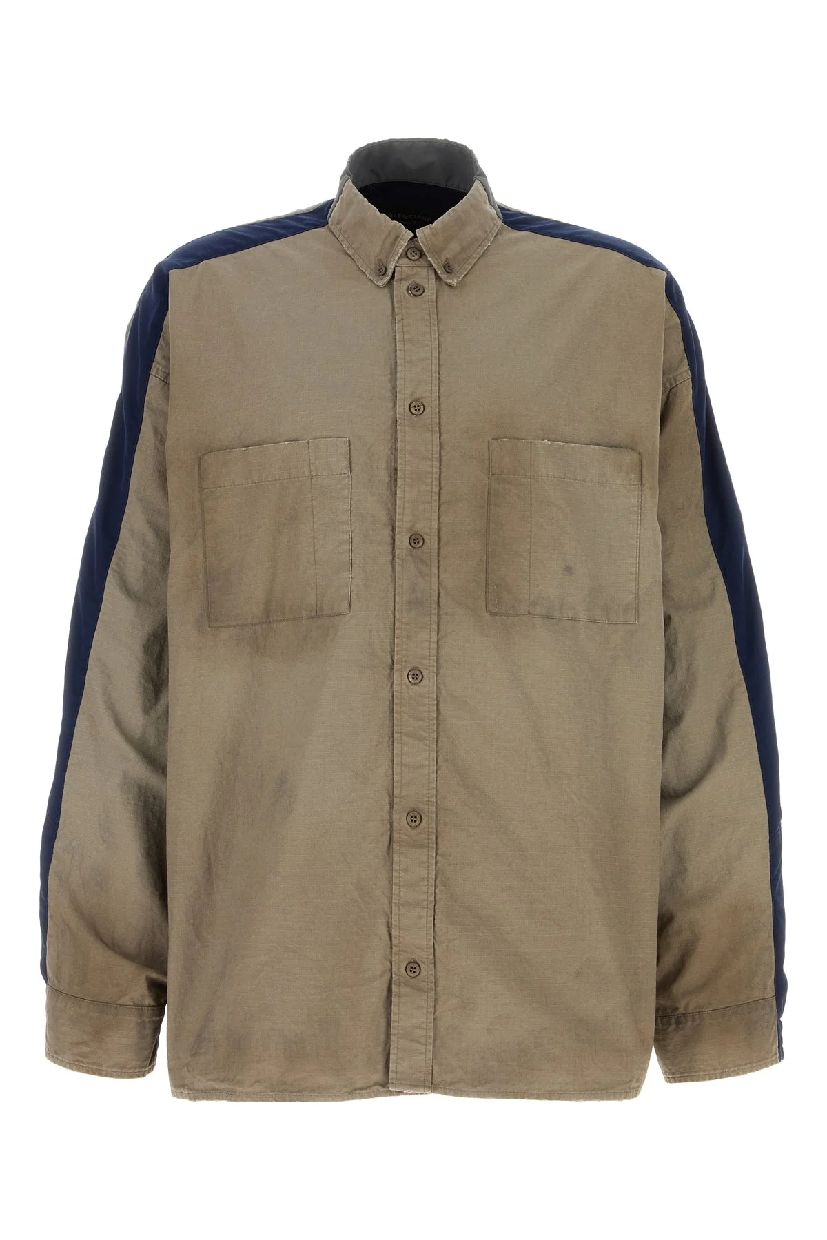 Shirt realized in cotton and polyester characterized by embroider logo at the back. -Button-down collar - Buttons closure - Two chest pockets - Partially elastic cuffs - Partially elastic hemline - Partially lined DETAILS Multicolor cotton and polyester shirt Exterior 1: 100% Cotton Exterior 2: 100% Polyester Lining: 100% Polyester Made in italy Model is 190 cm and is wearing a size 3
