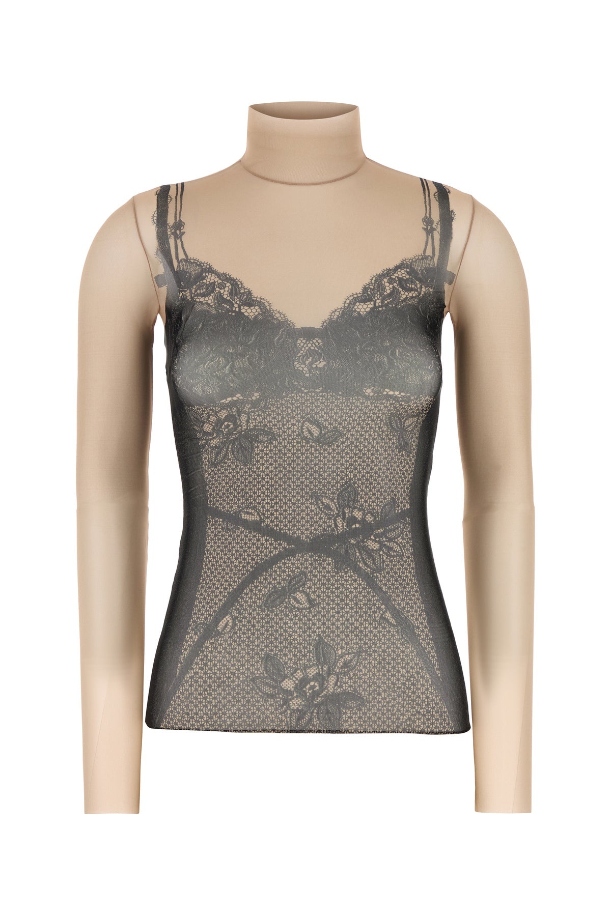 Top realized in stretch tulle characterized by Trompe L'œil print on the entire surface. - Mock turtleneck DETAILS Printed stretch tulle top Exterior: 80% Nylon 20% Elastane Made in italy Sample size: S