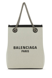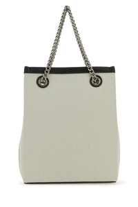 Handbag realized in cotton canvas characterized by contrasting logoed print at the front. - Two metal chain handle - Detachable adjustable leather shoulder strap - Lined interior DETAILS Exterior: 100% Cotton Lining: 100% Cotton Made In Italy Width: 16 cm Height: 20,5 cm Depth: 7 cm Handle height: 10 cm Min shoulder strap length: 20 cm Max shoulder strap length: 55 cm