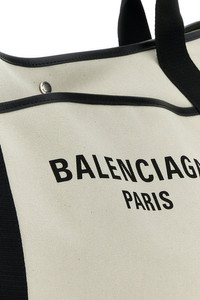 Shopping bag realized in pure cotton canvas characterized by contrasting logoed print at the front enriched by contrasting leather straps on the sides. - Two leather flat handles - Snap button closure - A slit pocket at the front - Lined interior with a zip pocket DETAILS Sand canvas large Biarritz shopping bag Exterior: 100% Cotton Lining: 100% Cotton Finishing: Silver metal Made in italy Width: 41 cm Height: 32 cm Depth: 26 cm Handle height: 20 cm