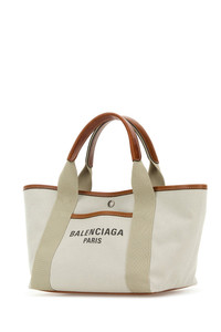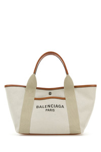 Shopping bag realized in pure cotton canvas characterized by contrasting logoed print at the front enriched by contrasting leather straps on the sides. - Two leather flat handles - Detachable leather shoulder strap - Snap button closure - A slit pocket at the front - Lined interior with a zip pocket DETAILS Sand canvas small Biarritz shopping bag Exterior: 100% Cotton Lining: 100% Cotton Finishing: Silver metal Made in italy Width: 24 cm Height: 19 cm Depth: 16 cm Handle height: 12 cm Shoulder strap length: 52 cm