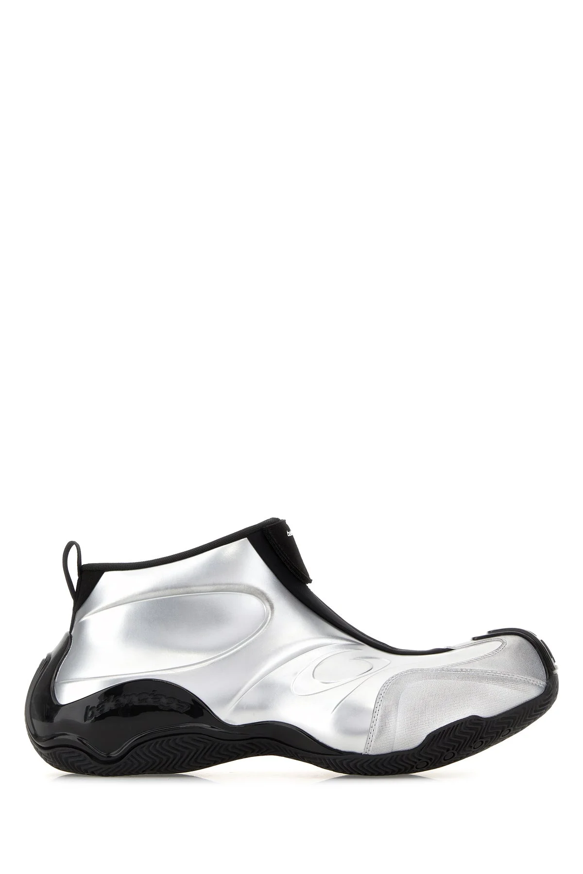 High-top sneakers realized in laminated fabric characterize by printed logo at the front and embossed logo on the side. - Maxi toe - Zip closure at the front - Heel pull-tab - Printed logo on the inside - Moulded sole DETAILS Silver fabric Basketball sneakers Exterior: 100% Fabric Interior: 100% Fabric Sole: Rubber Made in china