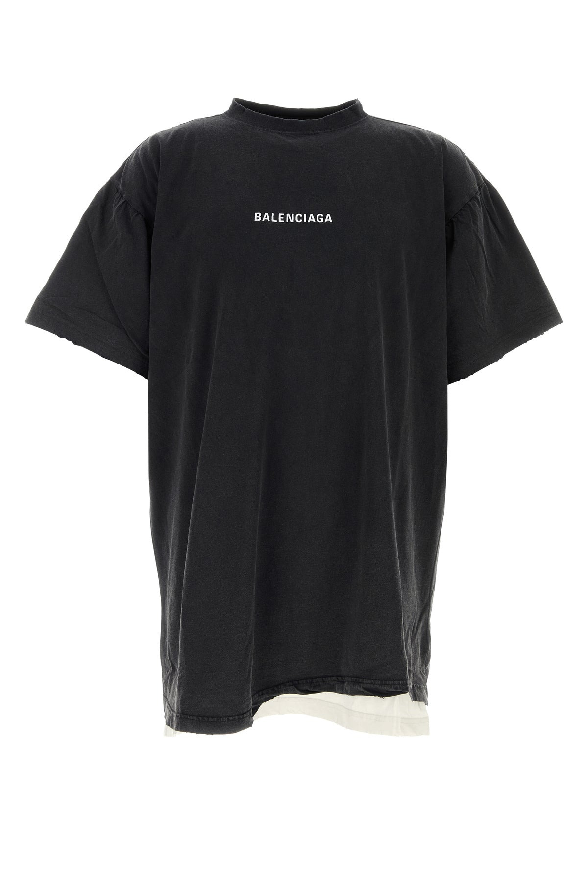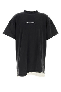Oversize t-shirt realized in pure cotton characterized by contrasting embroidered logo on the chest and at the back. - Ribbed crew-neck - Asymmetric hemline - Lined DETAILS Slate cotton oversize t-shirt Exterior: 100% Cotton Lining: 100% Cotton Made in italy Sample size: 3